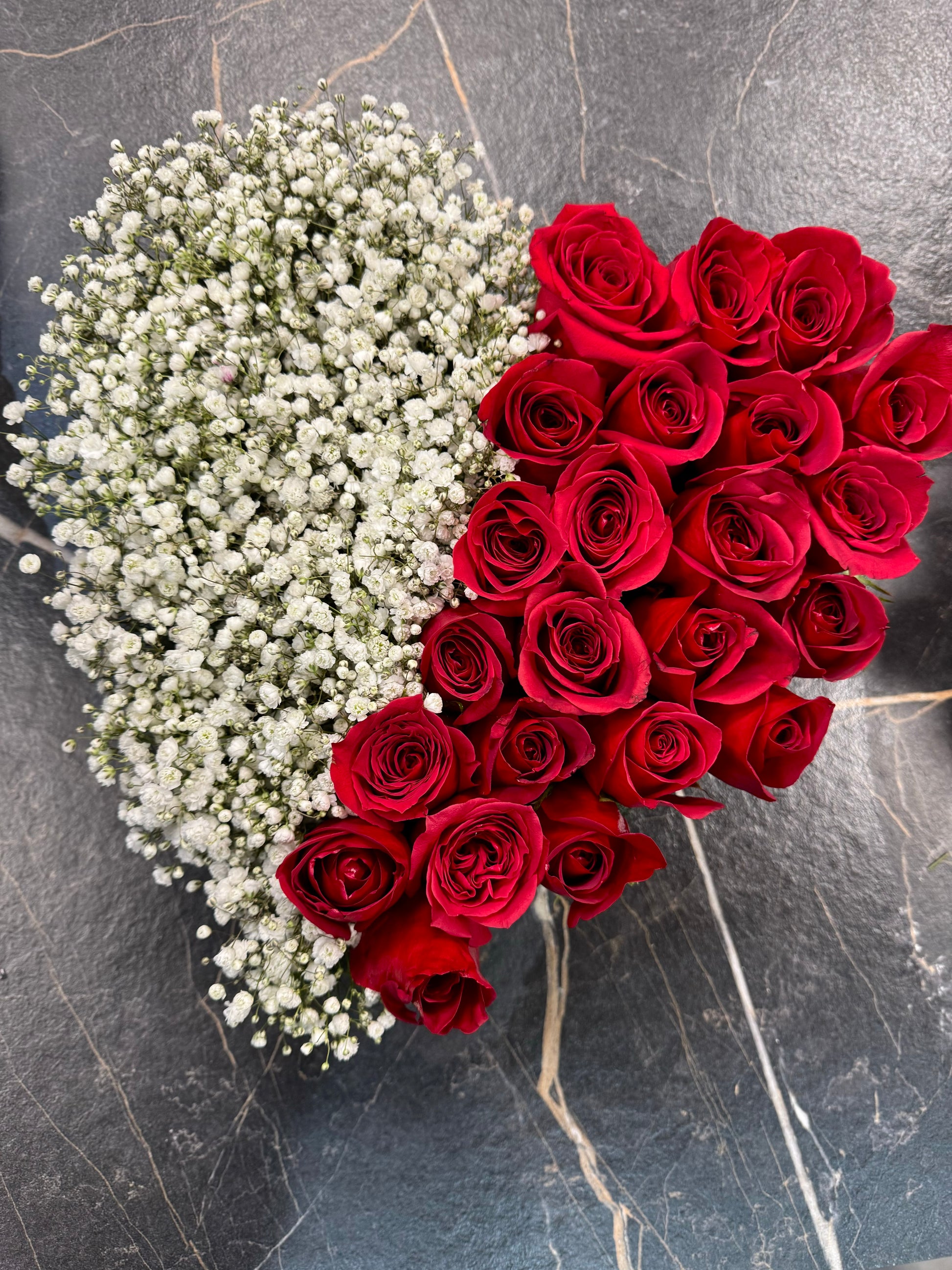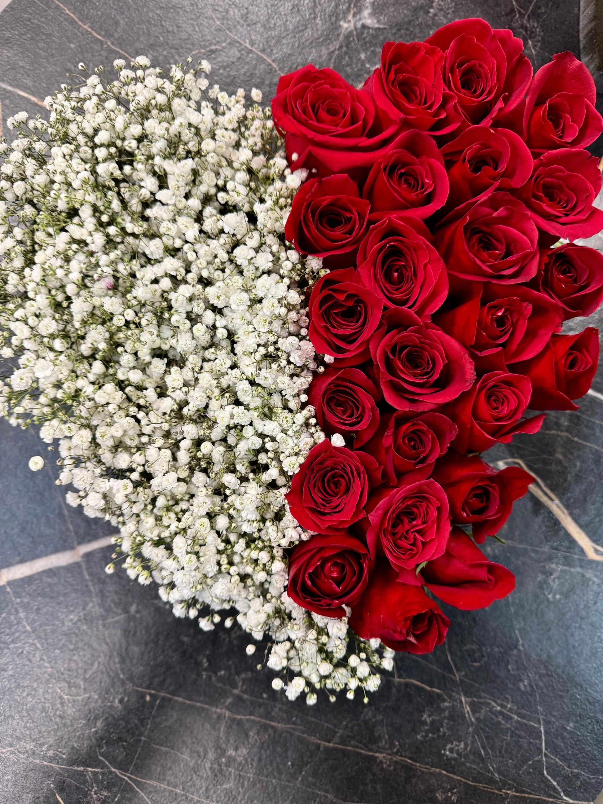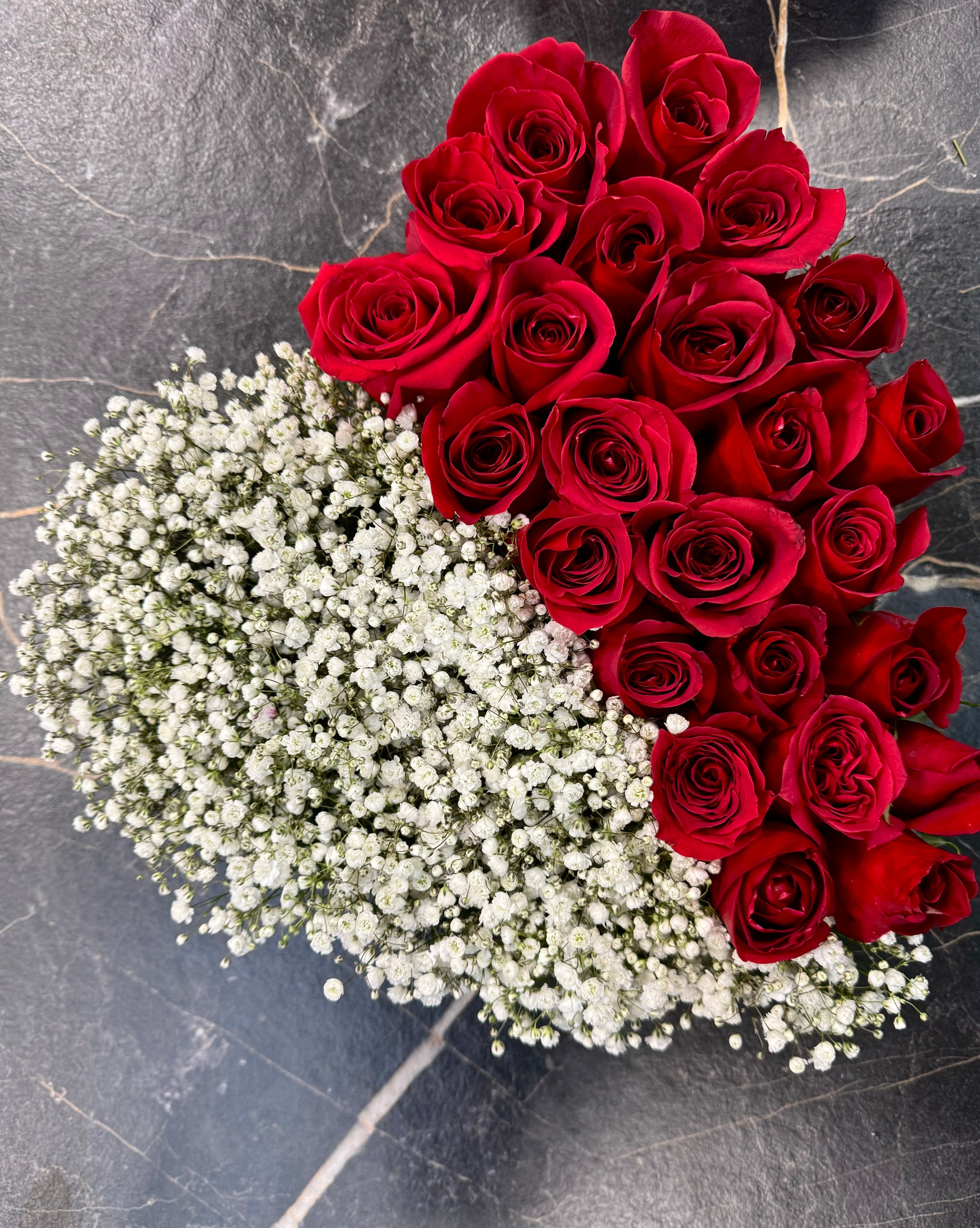 Immerse yourself in the epitome of romance with our Exquisite Heart-Shaped Fresh Rose Arrangement and White Gypsophila from Hila Flower Boutique. Meticulously preserved for everlasting beauty, each rose is artistically arranged to form a heart, symbolising the eternal bond shared between hearts.