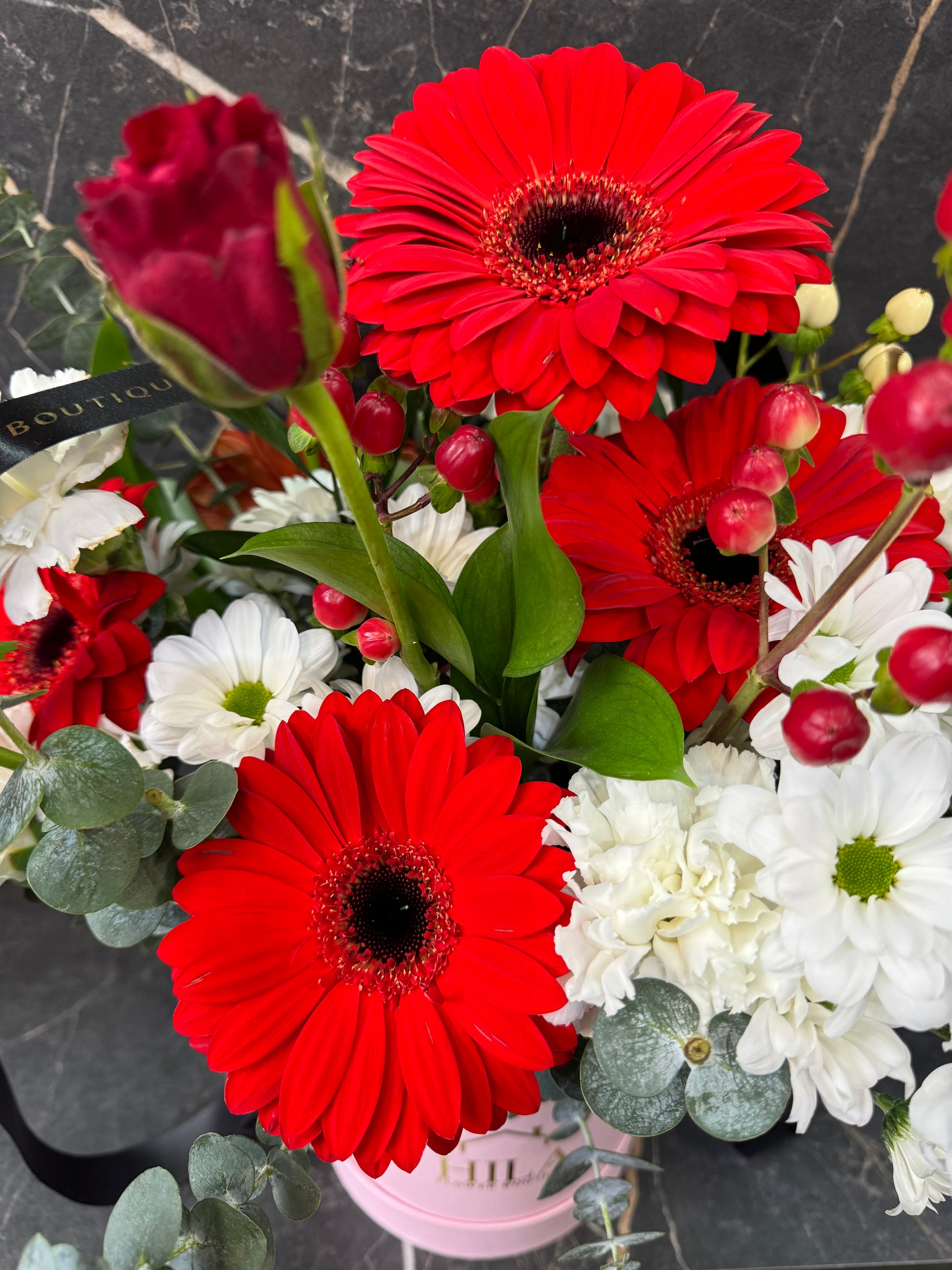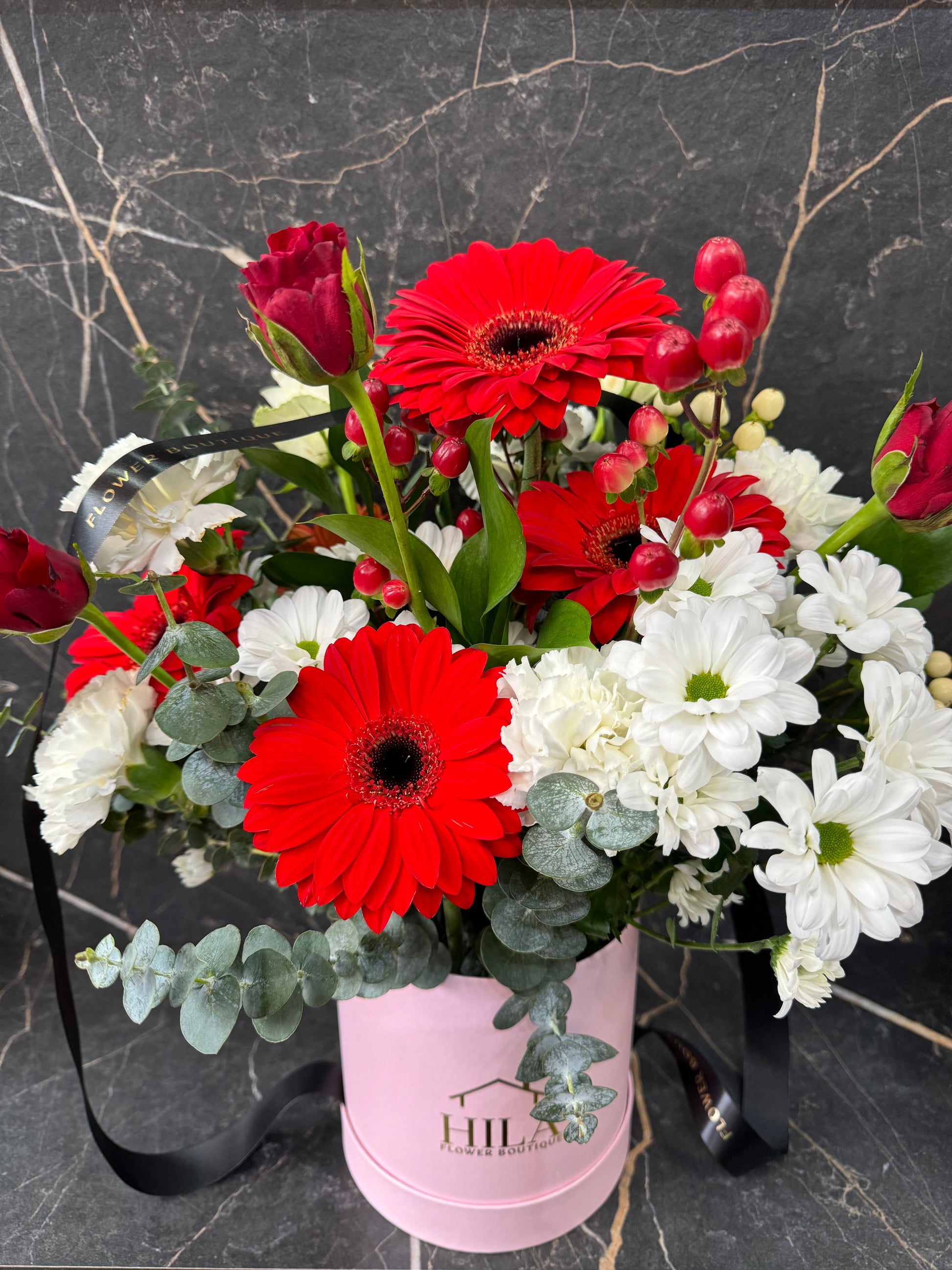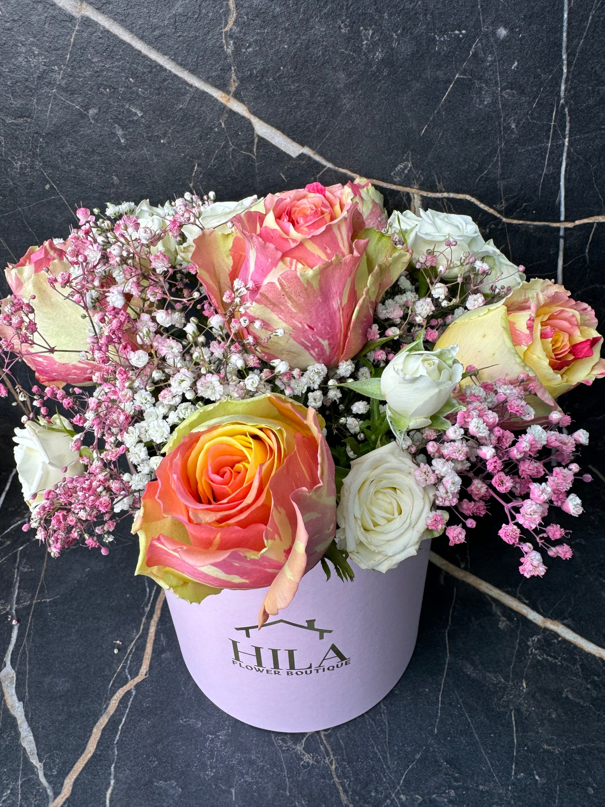 מוגשים בקופסת יוקרה מפנינה מהודרת, זרי הפרחים המרהיבים שלנו מעלים את אמנות ההענקה לרמה חדשה. פרחים רעננים, מסודרים בקפידה בתוך קופסת כובע פנינה יוקרתית ומלאת תחכום, יוצרים יצירה פרחונית שנועדה להותיר רושם בלתי נשכח.