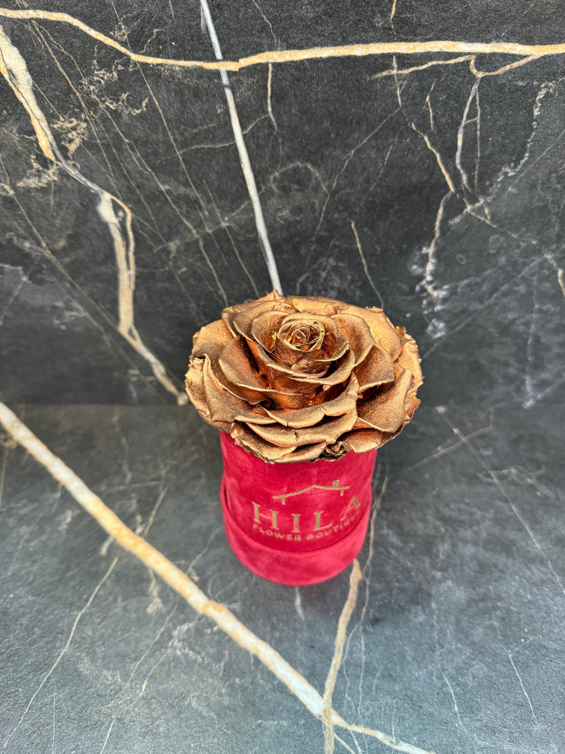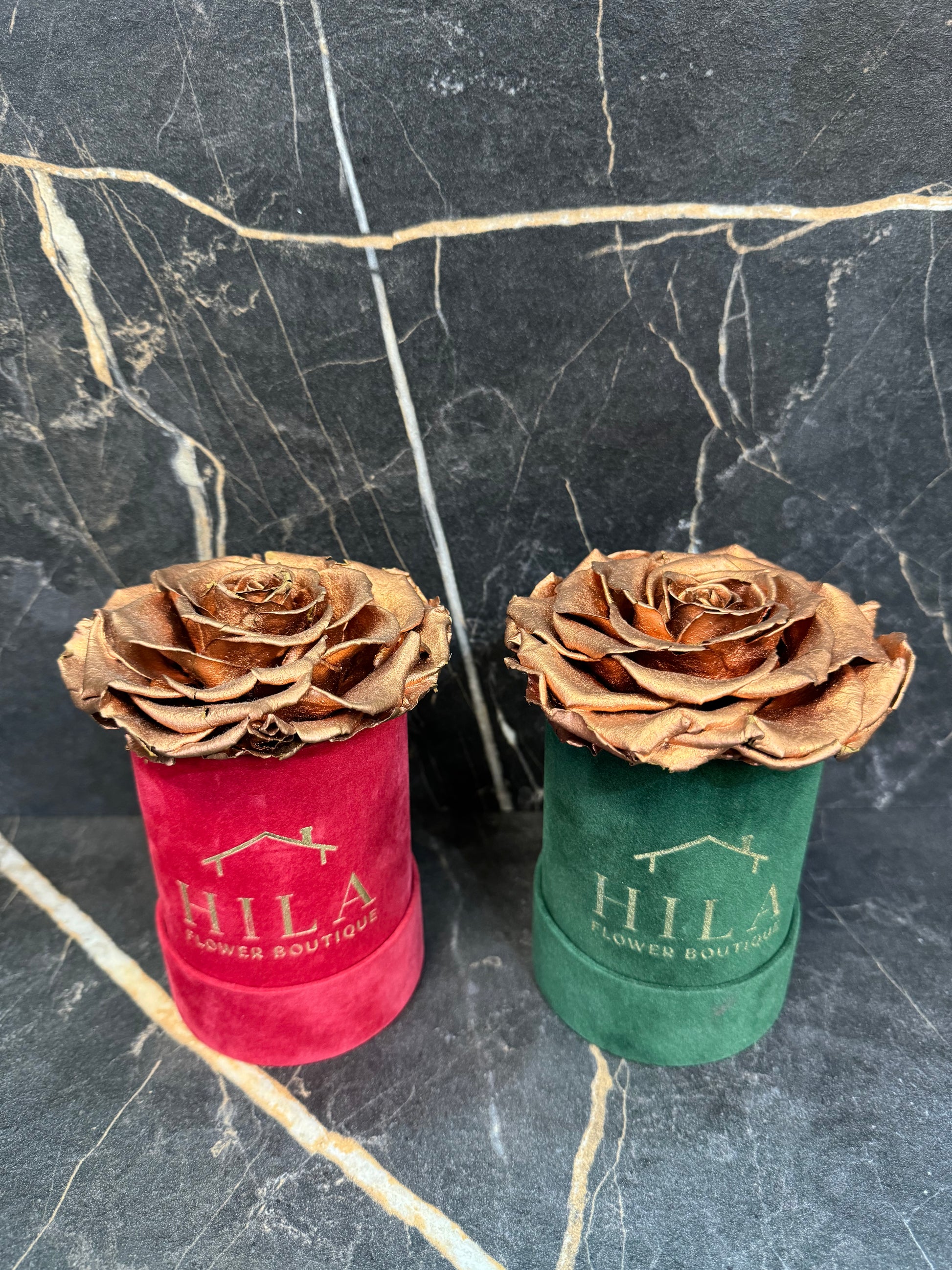 הסט המרהיב הזה כולל ורד נצחי יחיד, משומר בקפידה לשמירת יופיו הטבעי לעד.
