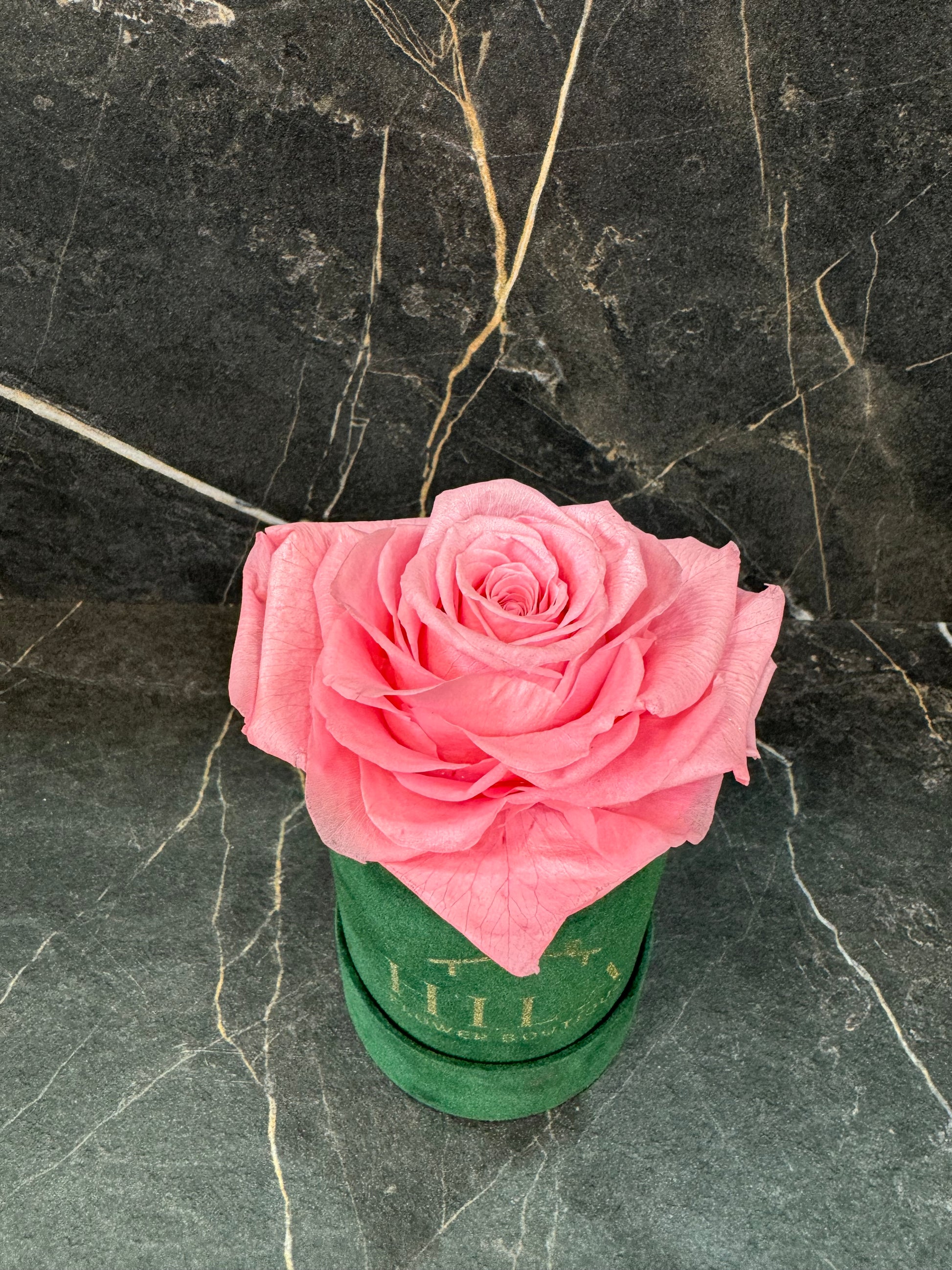 Nestled in a stunning mini classic round hat box, “The Eternal One" is a timeless expression of love and sophistication. The regal charm of the hat box, paired with the singular grace of the infinity rose, creates a perfect gift for those who appreciate the beauty of a single, enduring gesture.