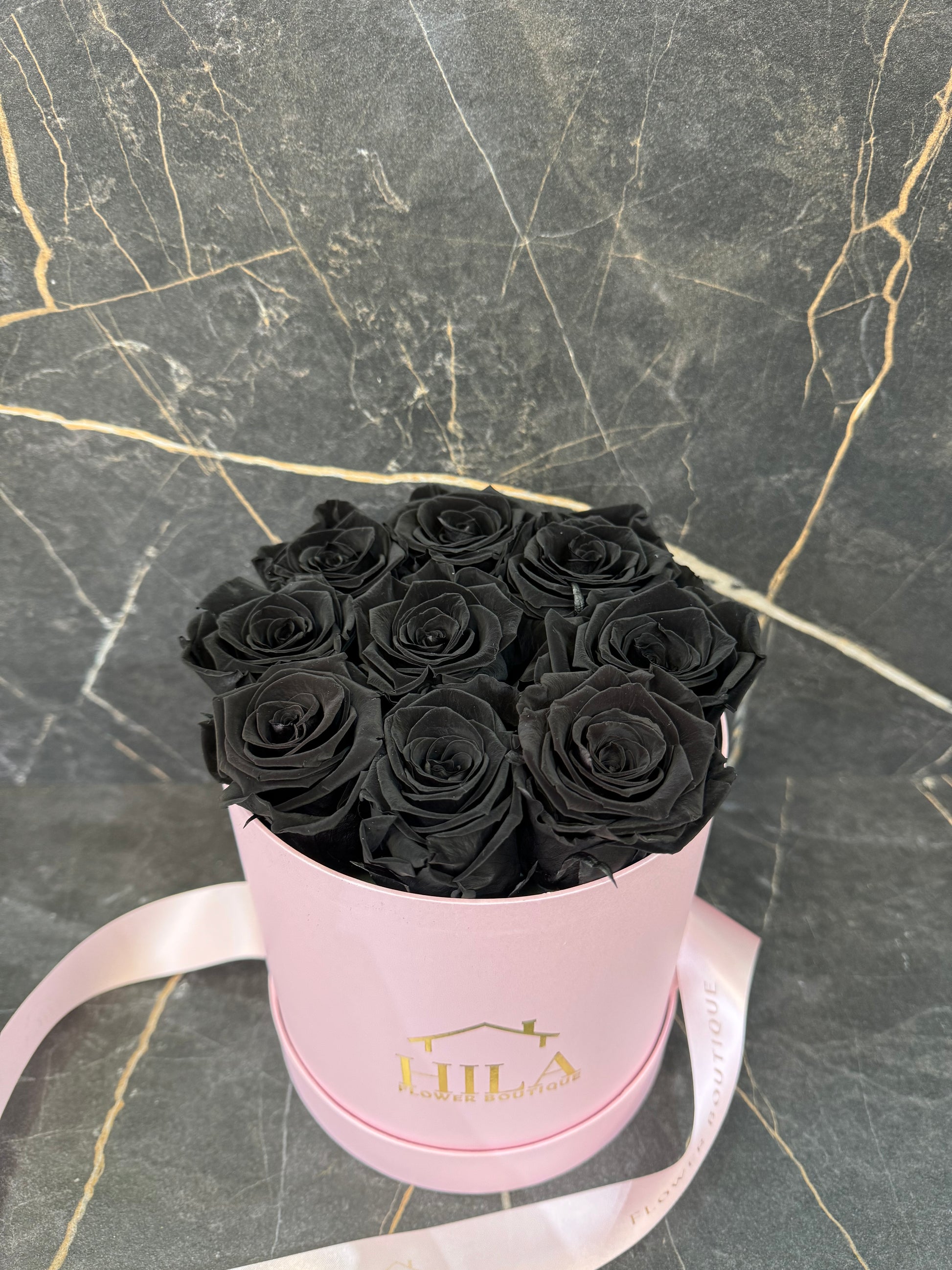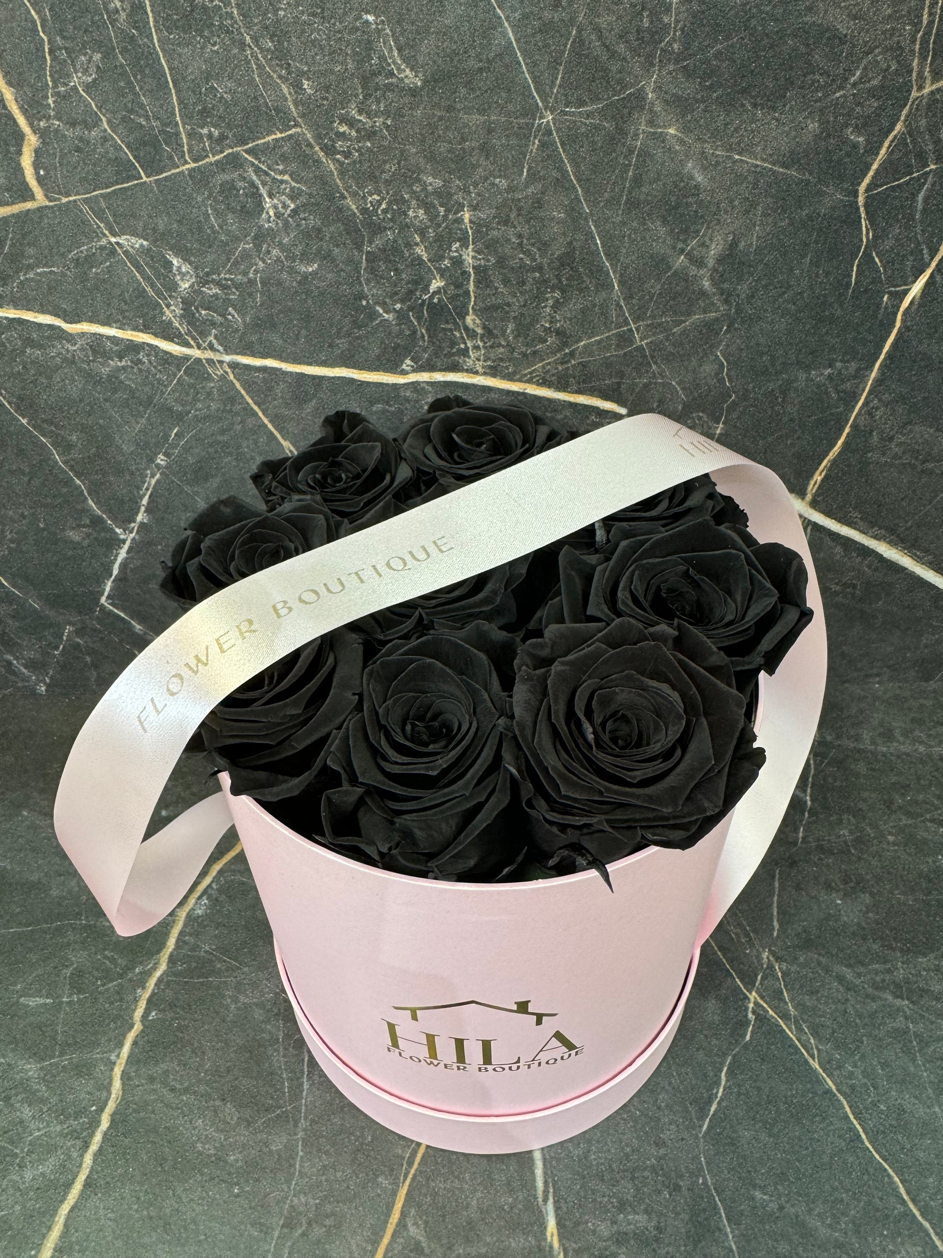 Nestled in a stunning classic round hat box, “Eternal Whispers" is a timeless expression of love and sophistication. The regal charm of the hat box, paired with the infinity roses, creates a perfect gift for those who appreciate the beauty of a single, enduring gesture.